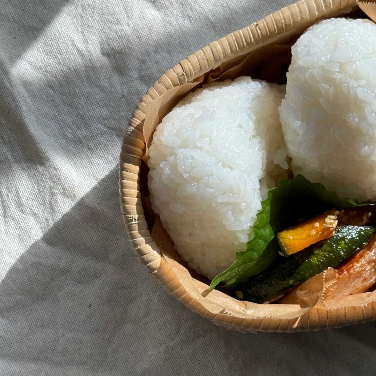 おむすびをはじめ、季節の食をやさしく包む柳の弁当箱。